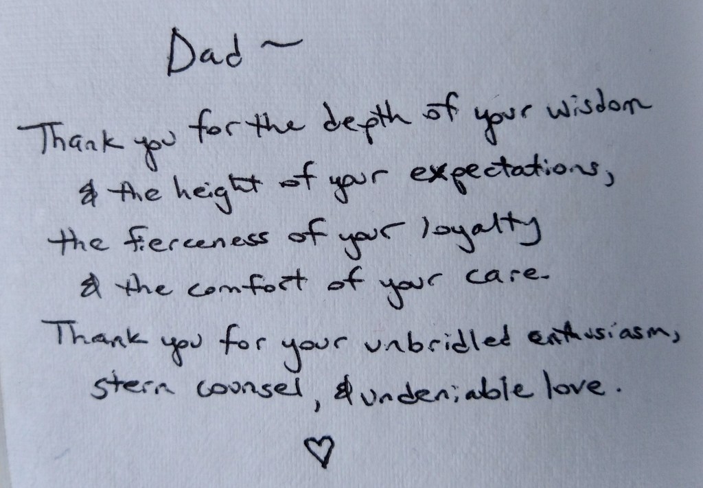 I love this memory of Dad. Simple and lighthearted. Perfect. As the months pass, I find myself treasuring these types of memories the most.